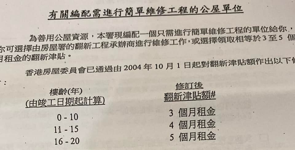 我話:「但我唔想要呢個地磚,起磚加扔磚費用2-3萬不等,咁有無公屋裝修津貼!」主任話15年樓齡內果啲先有津貼,33年無呢樣津貼!請教一下各位谷友:事實係唔係咁㗎?謝謝大家!