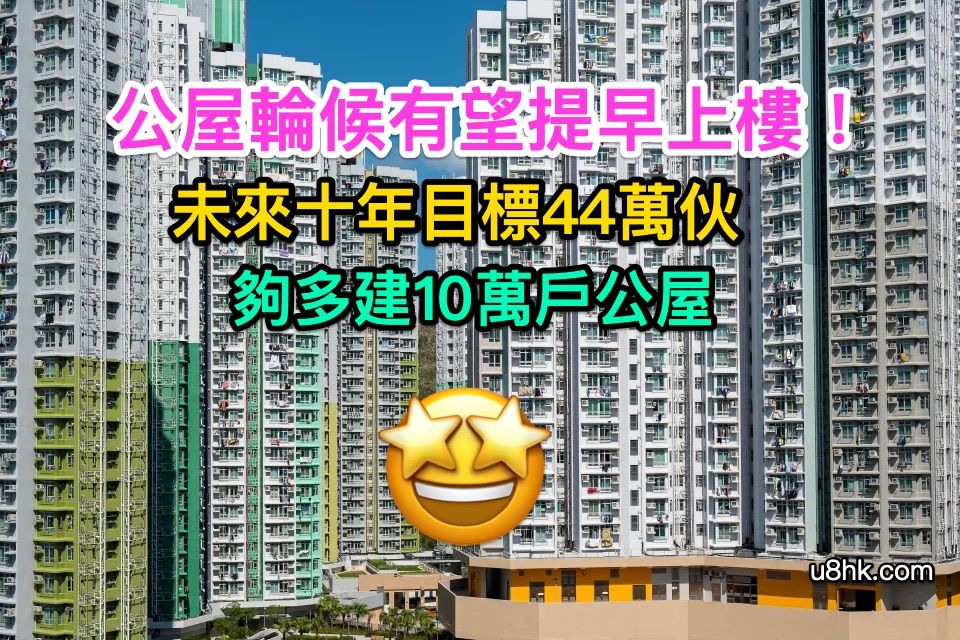 社會對住屋需求保持殷切,新一份《施政報告》公布資料顯示,2024至25年度至2033至34年度(下稱未來10年)的公私營房屋供應目標合計達到44萬伙,屬該目標連續4年維持43萬伙後首度回升。行政長官李家超指出,未來10年公營房屋的需求量為30.8萬伙,而政府已經覓得土地足以興建約41萬個公營房屋單位,超額完成約10萬伙,大大縮短輪候上樓的時間。