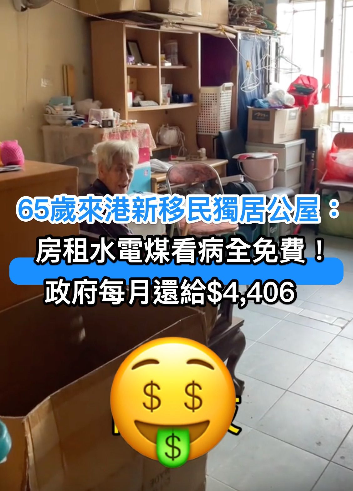 65歲來港新移民獨居公屋:房租水電煤看病全免費! 政府每月還給$4,406