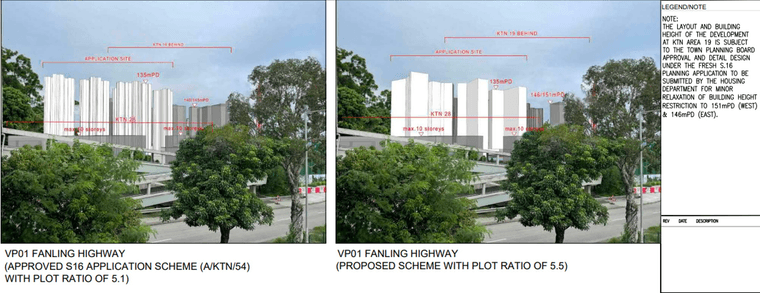 房協向城規會提交的文件顯示,將於古洞北新發展區第24區,興建專用安置屋邨,涉及4幢綜合用途大樓,相關大樓介乎32至34層樓高,包括1層地庫停車場和2層平台,今次申請是要求放寬該屋邨的地積比率,由4.5倍增至5倍,增幅為11.1%,以增加額外214個單位,令整個項目的單位總數增至2,868伙。